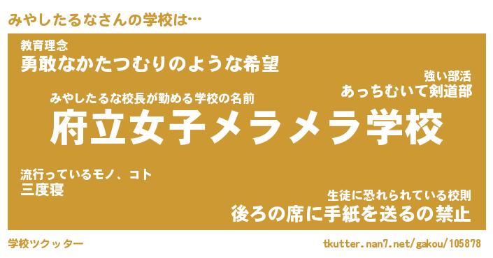 | ヒーロー風カッコイイあだ名 | 『スーパーミヤシタルナ』『幻影騎士ミヤ』 |