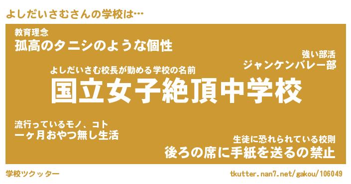 | 女子向けラノベタイトル風あだ名 | 『誰かこのよしだいさむを説明してください! ~契約から始まるウェディング~』 |