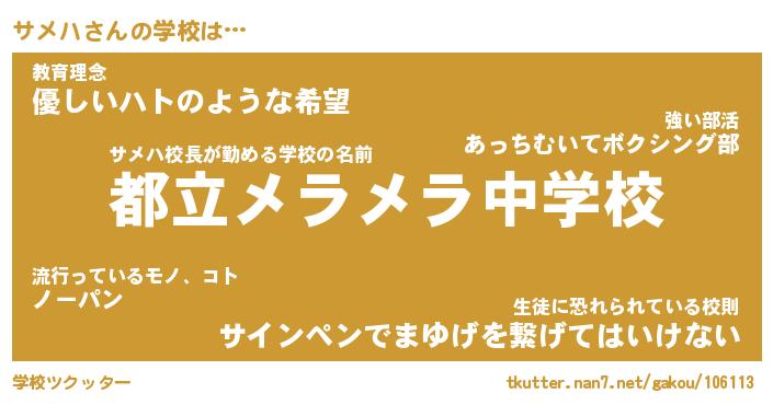 | ヒーロー風カッコイイあだ名 | 『スーパーサメハ』『ウルトラサメハマン』 |