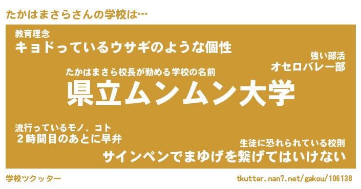 | ヘコむあだ名 | 『たかにゅー』『酢こんぶ』『たかお』 |