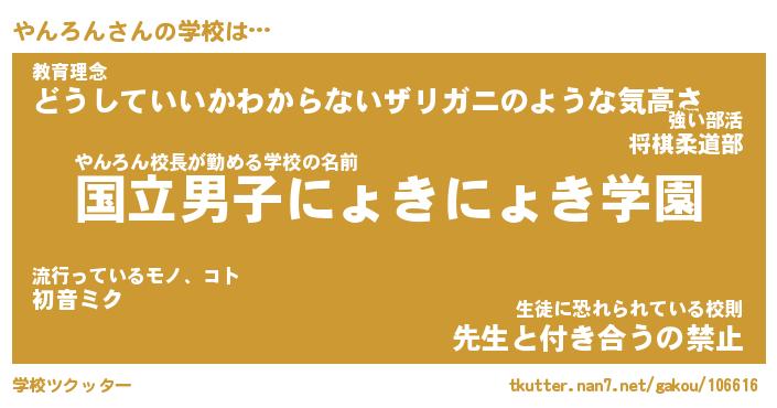 | 男性向けラノベタイトル風あだ名 | 『やんろんの憂鬱』 |