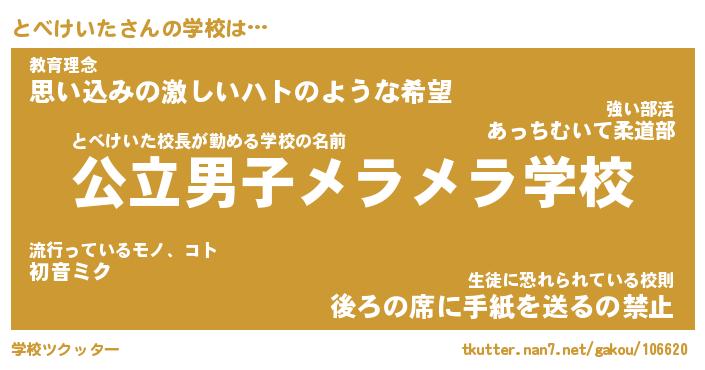 | 男性向けラノベタイトル風あだ名 | 『とべけいたの憂鬱』 |