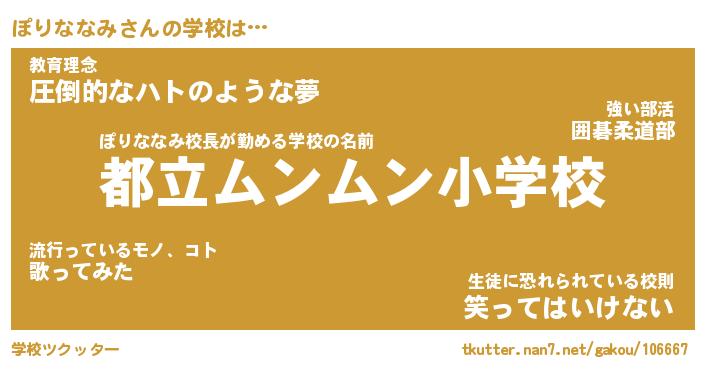 | 男性向けラノベタイトル風あだ名 | 『ぽりななみの憂鬱』 |