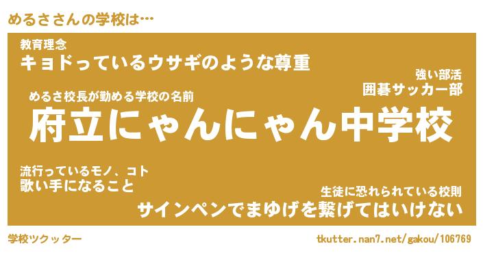 | 男性向けラノベタイトル風あだ名 | 『めるさの憂鬱』 |