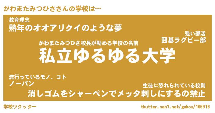 | 肩書あだ名 | 『かわまたみつひさ御曹司』 |