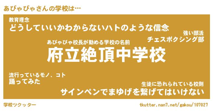 | 男性向けラノベタイトル風あだ名 | 『あびゃびゃの憂鬱』 |