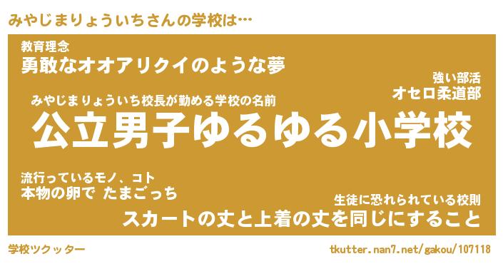 | ピコ太郎風あだ名 | 『ミコ八郎』『ピミ次郎』『ミヤ一郎』 |