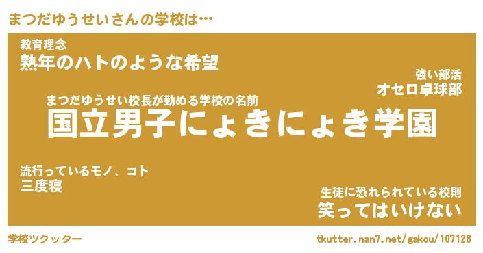 | 男性向けラノベタイトル風あだ名 | 『まつだゆうせいの憂鬱』 |