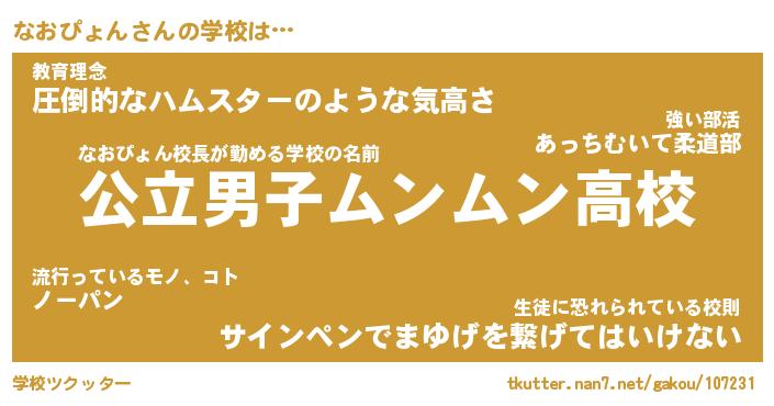 | 男性向けラノベタイトル風あだ名 | 『なおぴょんの憂鬱』 |