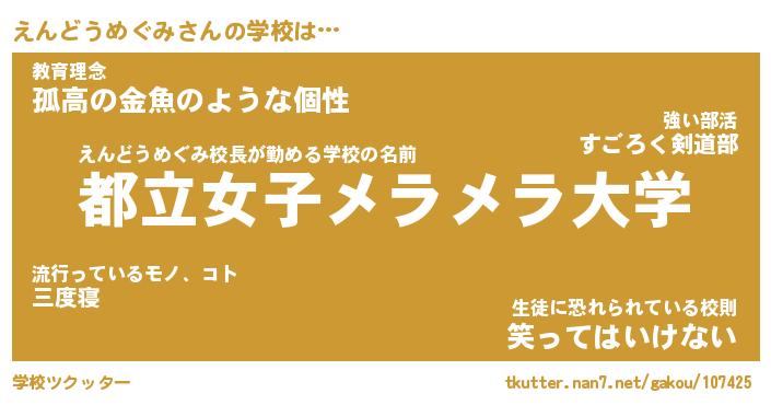 | 肩書あだ名 | 『えんどうめぐみ社長』 |