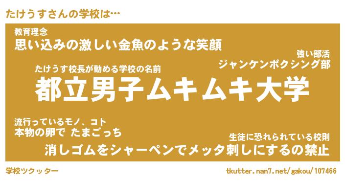 | ファンタジー風あだ名 | 『タケフェル』『エターナルタケウスー』 |