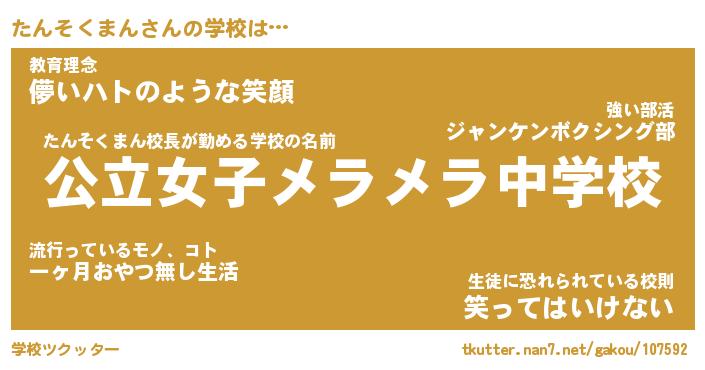 | ヒーロー風カッコイイあだ名 | 『スーパータンソクマン』『銀牙騎士タン』 |