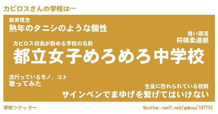 | 意味不明あだ名 | 『ペロリンカビロス』『永久保存カビロス』 |