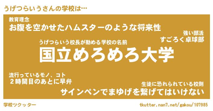 | 伝説のあだ名 | 『伝説のスナイパーうげつらいう』 |