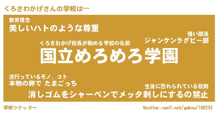 | 伝説のあだ名 | 『伝説のスナイパーくろさわかげ』 |