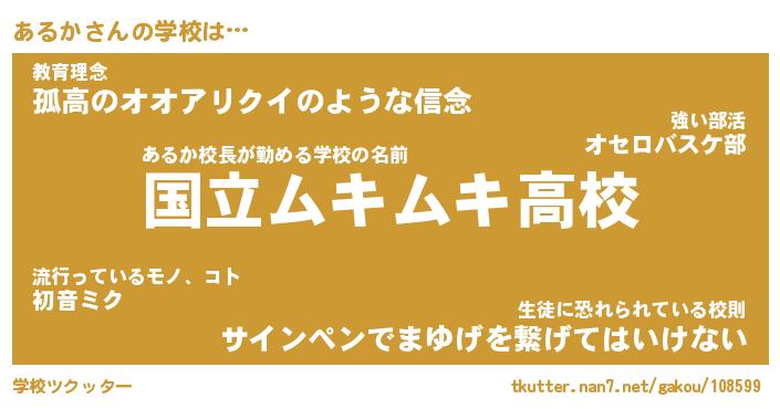 | 男性向けラノベタイトル風あだ名 | 『あるかの憂鬱』 |