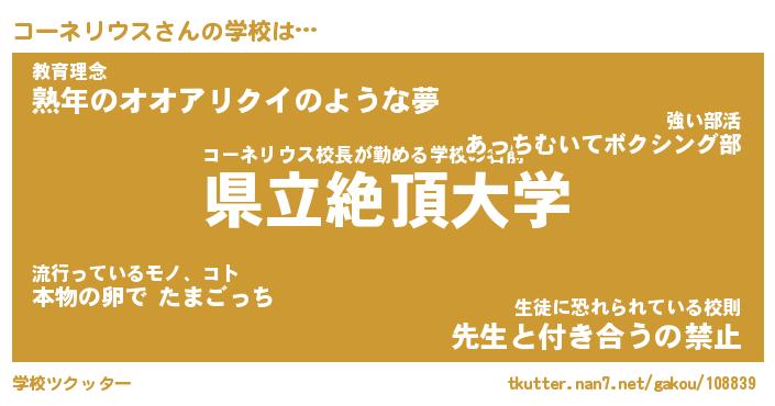 | 女子向けラノベタイトル風あだ名 | 『(仮)コーネリウスのやんごとなき事情』 |