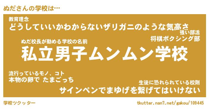 | 男性向けラノベタイトル風あだ名 | 『ぬだの憂鬱』 |