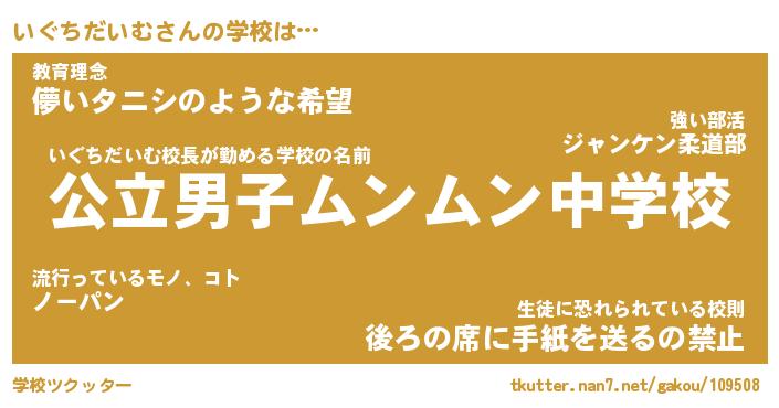 | 男性向けラノベタイトル風あだ名 | 『いぐちだいむの憂鬱』 |