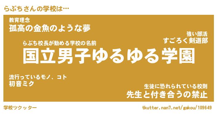 | 男性向けラノベタイトル風あだ名 | 『らぶちの憂鬱』 |