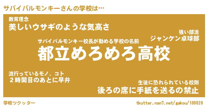 | 男性向けラノベタイトル風あだ名 | 『サバイバルモンキーの憂鬱』 |