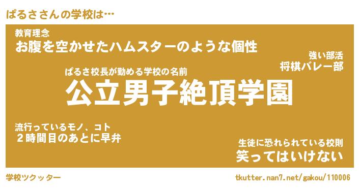 | 男性向けラノベタイトル風あだ名 | 『ぱるさの憂鬱』 |