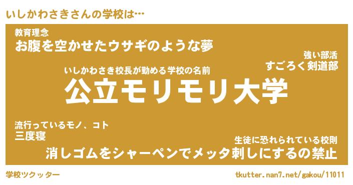 | 男性向けラノベタイトル風あだ名 | 『いしかわさきの憂鬱』 |