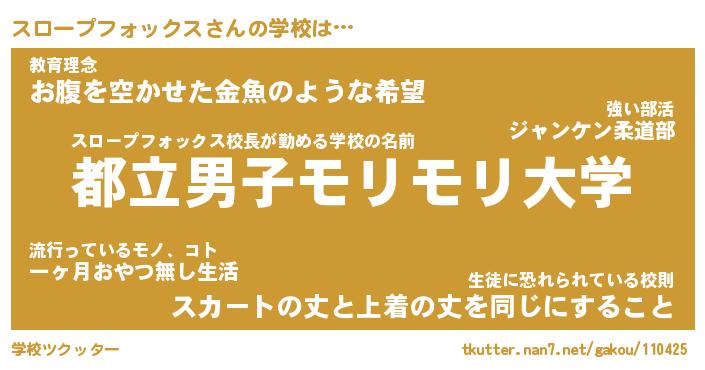 | 女子向けラノベタイトル風あだ名 | 『スロープフォックス姫と円卓の騎士』 |