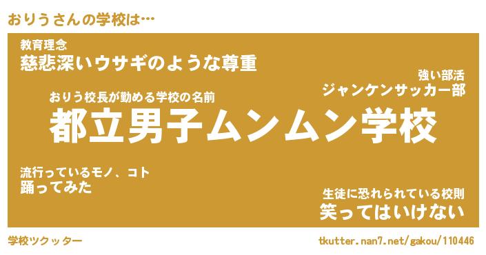 | おりう先生が勤める学校名『道立もふもふ小学校』 |