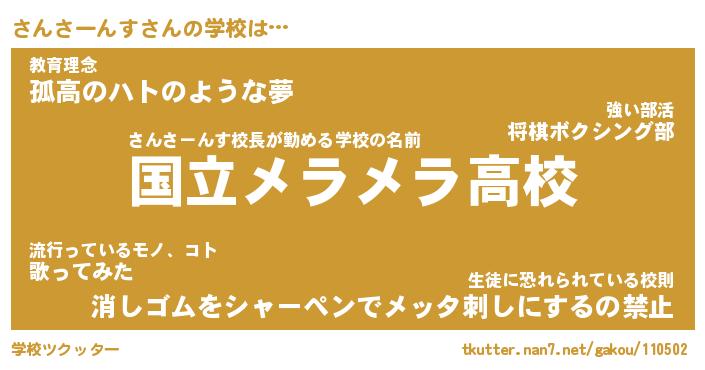| ヘコむあだ名 | 『さんにー』『つくし』『さん太郎』 |