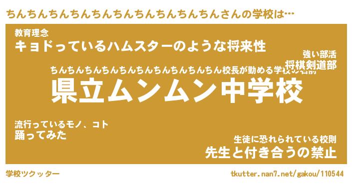 | 先生 | ちんちんちんちんちんちんちんちんちんちん先生が勤める学校名『国立もふもふ中学校』 |