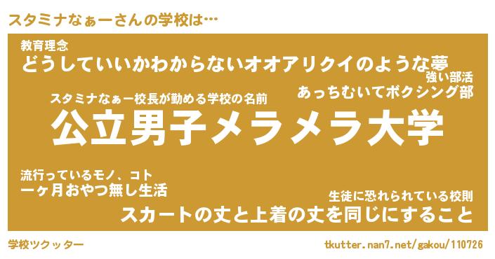 | 男性向けラノベタイトル風あだ名 | 『スタミナなぁーの憂鬱』 |
