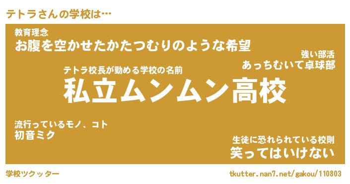 | 男性向けラノベタイトル風あだ名 | 『テトラの憂鬱』 |