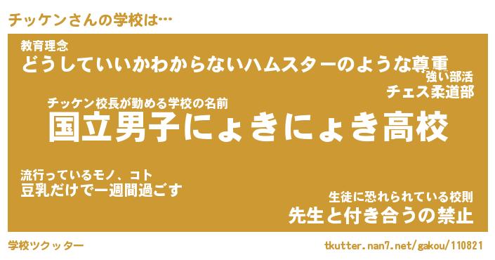| 男性向けラノベタイトル風あだ名 | 『チッケンの憂鬱』 |
