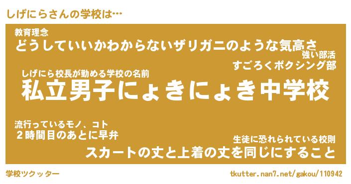 | ピコ太郎風あだ名 | 『シコ二郎』『ピシ太郎』『シゲ二郎』 |