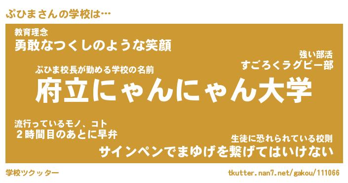 | ヘコむあだ名 | 『ぷひもー』『なまこ酢』『ぷひお』 |