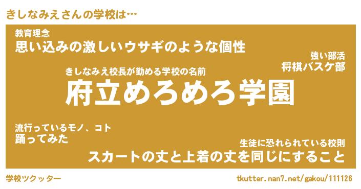 | 肩書あだ名 | 『きしなみえ御曹司』『きしなみえ校長』 |