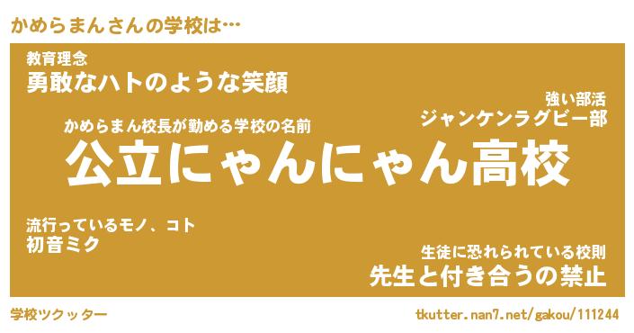 | 肩書あだ名 | 『かめらまん社長令嬢』『かめらまん校長』 |