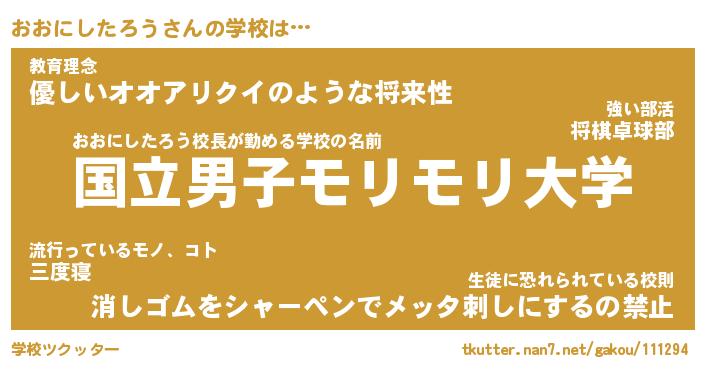 | 女子向けラノベタイトル風あだ名 | 『おおにしたろう姫と円卓の騎士』 |