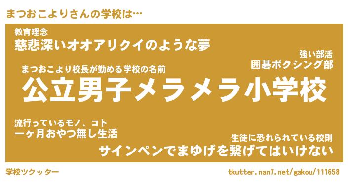 | 男性向けラノベタイトル風あだ名 | 『まつおこよりの憂鬱』 |
