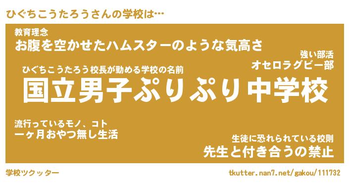 | 男性向けラノベタイトル風あだ名 | 『ひぐちこうたろうの憂鬱』 |