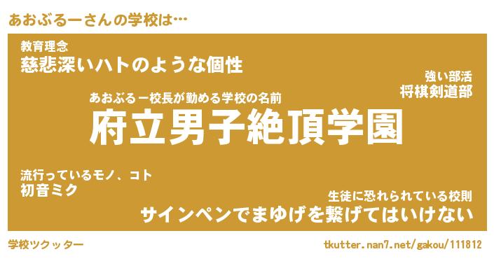 | 女子向けラノベタイトル風あだ名 | 『あおぶるー姫と円卓の騎士』 |