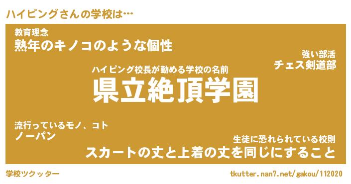 | 男性向けラノベタイトル風あだ名 | 『ハイピングの憂鬱』 |
