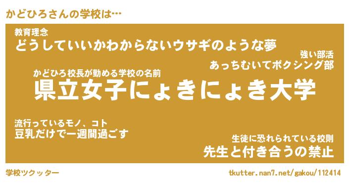 | ヘコむあだ名 | 『かどにゅー』『レバニラ』『かどを』 |