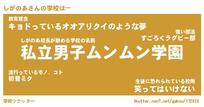 | 男性向けラノベタイトル風あだ名 | 『しがのあの憂鬱』 |