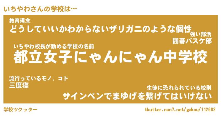 | 意味不明あだ名 | 『ペロリンいちやわ』『永久保存いちやわ』 |
