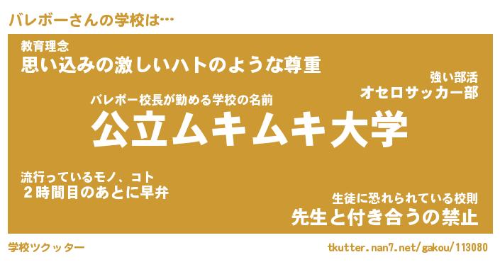 | 男性向けラノベタイトル風あだ名 | 『バレボーの憂鬱』 |
