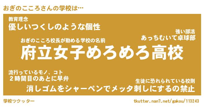 | 男性向けラノベタイトル風あだ名 | 『オギノココロアートオンライン』 |