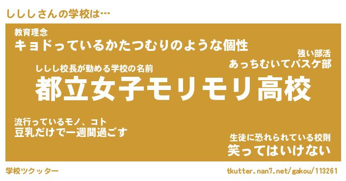 | ししし先生が勤める学校名『区立肉球高校』 |