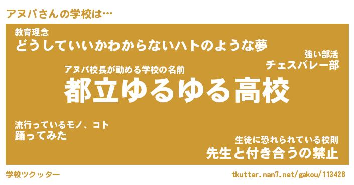 | ファンタジー風あだ名 | 『アヌフェル』『エターナルアヌパー』 |